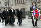 Београд, 12. март 2016. године – Чланови некадашње владе Зорана Живковића одали су данас пошту и положили венац на спомен-плочу у дворишту Владе Србије, на месту на којем је премијер Зоран Ђинђић убијен пре тринаест година. | даље »