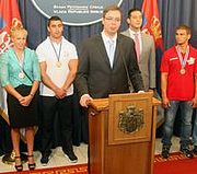 Београд, 12. август 2014. године – Председник Владе Републике Србије Александар Вучић и министар омладине и спорта Вања Удовичић одржали су данас пријем за кајакаше који су на Светском првенству у Москви освојили пет медаља. | даље »