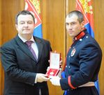 Београд, 19. март 2012. године – Заменик председника Владе Републике Србије и министар унутрашњих послова Ивица Дачић уручио је данас сребрне медаље за храброст “Милош Обилић” десеторици припадника МУП-а и једном цивилном лицу за испољену храброст и дела личног херојства. | даље »