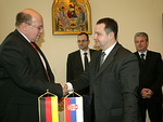 Београд, 23. фебруар 2009. године – Потпредседник Владе Републике Србије за европске интеграције Божидар Ђелић упознао је данас парламентарног државног секретара Савезног министарства унутрашњих послова Немачке Петера Алтмајера са свим активностима Владе усмереним на интеграцију Србије у ЕУ. | даље »