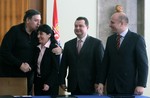 Београд, 6. фебруар 2009. године – Први потпредседник-заменик председника Владе и министар унутрашњих послова Ивица Дачић, министар финансија Диана Драгутиновић, министар пољопривреде, шумарства и водопривреде Саша Драгин и министар за инфраструктуру Милутин Мркоњић потписали су данас Споразум о сарадњи у области интегрисаног управљања границом. | даље »