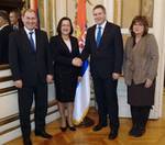 Београд, 24. фебруар 2015. године – Министар привреде Жељко Сертић, министар финансија Душан Вујовић и председник Привредне коморе Србије Марко Чадеж разговарали су данас са амбасадором Француске у Србији Кристин Моро, председником Француско-српске привредне коморе Патриком Коленом и представницима више француских и српских компанија. | даље »