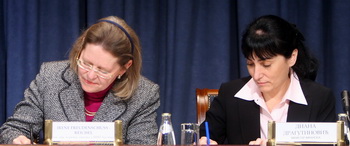 Београд, 6. фебруар 2009. године – Министар финансија у Влади Републике Србије Диана Драгутиновић и генерални директор за аустријску развојну сарадњу у Министарству спољних послова Републике Аустрије Ирена Фројденшус-Рајхл потписале су данас Споразум о развојној сарадњи између Србије и Аустрије.