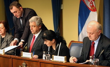 Београд, 24. фебруар 2009. године – Министар финансија у Влади Републике Србије Диана Драгутиновић, амбасадор Швајцарске у Србији Ервин Хофер и директор Агенције за осигурање депозита Милорад Џамбић потписали су данас уговор о техничкој помоћи Швајцарске тој агенцији у износу од 2,74 милиона евра.