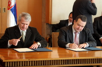 Београд, 25. фебруар 2009. године – Први потпредседник-заменик председника Владе Републике Србије и министар унутрашњих послова Ивица Дачић и декан Правног факултета у Београду Мирко Васиљевић потписали су данас Протокол о сарадњи који се односи на заједнички рад на прописима из надлежности овог министарства.