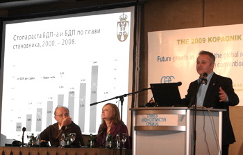 Копаоник, 5. март 2009. године – Потпредседник Владе и министар економије и регионалног развоја Млађан Динкић оценио је синоћ на панел дискусији у оквиру "Бизнис форума" на Копаонику да су избегавање рецесије и одржавање постојећег нивоа запослености циљеви на које ће Влада Србије ставити акценат како би ублажила негативне ефекте светске економске кризе.