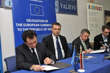 Ваљево, 1. април 2009. године – Потпредседник Владе Републике Србије за европске интеграције Божидар Ђелић и шеф Делегације Европске комисије у Београду Жозеп Љоверас потписали су данас у Ваљеву финансијски споразум за коришћење средстава из програма ИПА 2008 у вредности од 168 милиона евра.