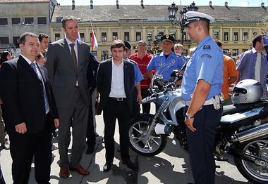 Павличић је министру унутрашњих послова симболично предао кључеве два мотоцикла марке "БМW" и 20 скутера "веспа", који су намењени саобраћајној полицији и полицијским станицама на градском подручју.