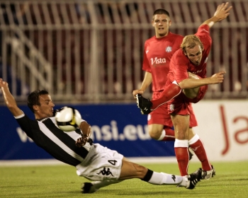 Београд, 21. јул 2009. године - Фудбалери Партизана пласирали су се у треће коло квалификација за Лигу шампиона након што су у два меча против Рила из Велса постигли 12 голова, а нису примили ниједан.