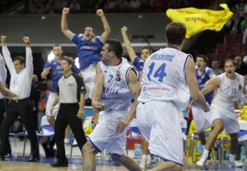 Катовице, ПОЉСКА, 19. септембар 2009. године - Мушка кошаркашка репрезентација Србије пласирала се у финале Европског првенства у Пољској након што је у полуфиналу, после продужетка, била боља од селекције Словеније резултатом - 96:92, 79:79 (11:19, 24:26, 21:12, 23:22, 17:13).