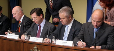 | Вилијам Инфанте, Ињиго де Паласио Еспања, Млађан Динкић и Саша Драгин |