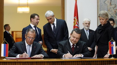 Београд, 20. октобар 2009. године – У присуству председника Србије Бориса Тадића и председника Руске Федерације Дмитрија Медведева званичници двеју земаља потписали су данас у Палати "Србија" пет међудржавних споразума и два уговора.