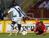 Камерунац у дресу Партизана Пјер Боја представљао је перманентну опасност по гол домаћина |