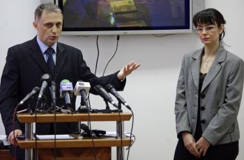 | Миљко Радисављевић и Снежана Маловић на данашњој конференцији за новинаре |