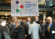 Београд, 19. октобар 2004. године - Министри у Влади Републике Србије Велимир Илић, Александар Поповић, Радомир Наумов и Ивана Дулић-Марковић представили су јуче партнерима из Италије могућности привреде Србије и позвали их да улажу у нашу земљу и сарађују са српским фирмама.