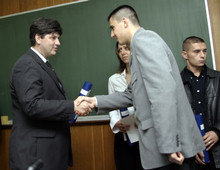 Београд, 27. октобар 2004. године - Министар унутрашњих послова у Влади Републике Србије Драган Јочић уручио је данас дипломе и награде најбољим студентима 31. генерације Више школе унутрашњих послова у Земуну.