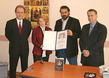Београд, 29. октобар 2004. године - У Министарству за дијаспору Владе Републике Србије данас је одржана свечаност на којој је Мили Алечковић-Николић, клиничком психологу и писцу који живи и ради у Паризу, уручена захвалница Министарства за допринос који је пружила у јачању веза дијаспоре са матицом.