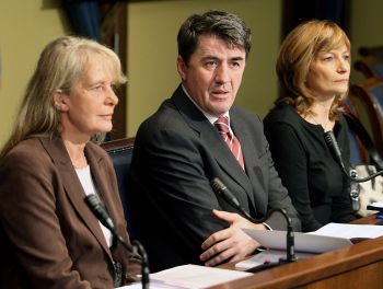 | Тинде Ковач-Церовић, Жарко Обрадовић и Драгица Павловић-Бабић на данашњој конференцији за новинаре |