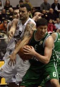 Борба за сваку лопту: детаљ са сусрета Партизан - Олимпија |
