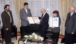 Београд, 8. новембар 2004. године - Заменик министра за дијаспору у Влади Републике Србије Александар Чотрић уручио је данас специјалне захвалнице истакнутој представници српске заједнице у Француској Заде Ђуровић и познатом канцерологу Жоржу Матеу из Париза.