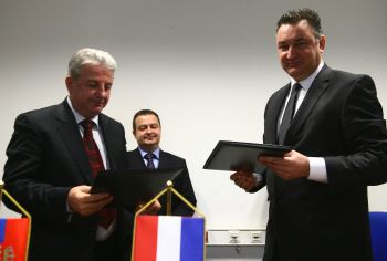 Директори полиција Србије и Хрватске Милорад Вељовић и Оливер Грбић потписали су данас у присуству министара унутрашњих послова двеју земаља Протокол о оснивању заједничке контактне службе на граничном прелазу Батровци-Бајаково ради боље размене информација и сузбијања илегалних прелазака и криминала.