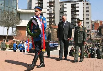 Врање, 24. март 2011. године – Министар одбране у Влади Републике Србије Драган Шутановац положио је данас у Врању венац на Спомен-обележје припадницима Војске, Министарства унутрашњих послова и грађанима погинулим у НАТО бомбардовању 1999. године.