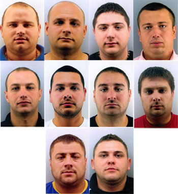 Припадници београдске полиције, Управе криминалистичке полиције МУП-а и Специјалне антитерористичке јединице ухапсили су Новицу Елека (1981), Ивана Јурака (1976), Богдана Рестовића (1989), Милоша Марковића (1978), Петра Обрадовића (1980), Бориса Полића (1983), Ненада Грчића (1979) и Сенада Денаја (1978) из Београда, док се за Урошем Петровићем (1982), Ненадом Курилом (1986) и Александром Булајићем (1978) интензивно трага.