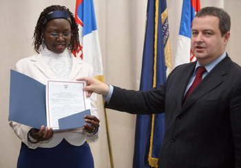 Београд, 27. април 2011. године – Заменик председника Владе Србије и министар унутрашњих послова Ивица Дачић уручио је данас решење за пријем у радни однос у МУП Србије првој припадници тог министарства пореклом из Уганде Роз Абот Мирембе Јосиа Бугарчић и том приликом поручио да је то министарство отворено за све своје држављане, без обзира на порекло и националну припадност.