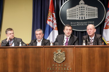 | Слободан Хомен, директор Канцеларије за сарадњу с медијима Владе Републике Србије Миливоје Михајловић, Небојша Ћирић и Зоран Станковић |