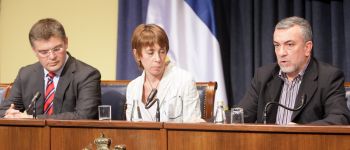 Директор Канцеларије за европске интеграције Милица Делевић саопштила је на конференцији за новинаре да се очекује да ће Влада у септембру усвојити предлоге закона о јавној својини и о денационализацији.
