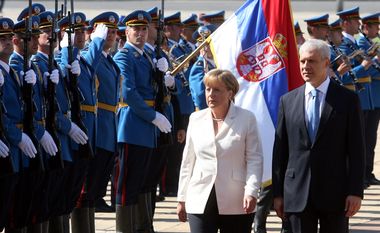 Канцелару Немачке претходно је пред Палатом Србије приређен свечани дочек уз највише државне почасти.