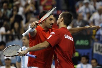 Београд, 17. септембар 2011. године – Мушка тениска репрезентација Србије смањила је данас резултат на 2:1 против Аргентине у полуфиналу Дејвис купа, које се игра у Београдској арени.