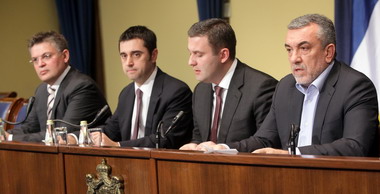 Слева: Координатор Владе Србије за односе с јавношћу Слободан Хомен, Душан Никезић, Небојша Ћирић и Миливоје Михајловић |