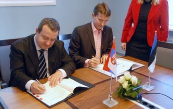 Београд/Талин, 9. новембар 2011. године – Заменик председника Владе Републике Србије и министар унутрашњих послова Ивица Дачић данас је у Талину са министром унутрашњих послова Естоније Кеном Мартијем Ваером потписао Протокол о спровођењу Споразума између Србије и Европске заједнице о реадмисији лица која незаконито бораве.
