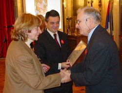 Београд, 8. децембар 2004. године - Министар здравља у Влади Републике Србије Томица Милосављевић и портпарол Европске агенције за реконструкцију Џон Вајт уручили су данас награде најбољим београдским домовима здравља који су у оквиру кампање "Ти си моје срце" радили на унапређењу квалитета њиховог радног окружења.