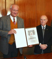 Београд, 10. децембар 2004. године - Министар за дијаспору у Влади Републике Србије Војислав Вукчевић уручио је данас потпредседнику Српско-аустријског друштва Волфангу Рорхбаху захвалницу Министарства за допринос на унапређењу веза Аустрије и Србије.