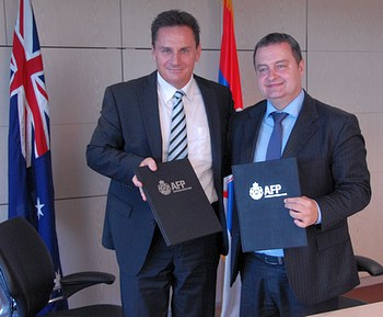 Београд/Канбера, 15. фебруар 2012. године –Заменик председника Владе Републике Србије и министар унутрашњих послова Ивица Дачић и директор Аустралијске федералне полиције Тони Негус потписали су данас у Канбери Меморандум о разумевању који ће представљати будући правни оквир за сарадњу у борби против транснационалног организованог криминала.