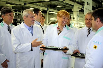 Баточина, 1. март 2012. године – Потпредседник Владе Републике Србије за привредни и регионални развој Верица Калановић присуствовала је данас отварању нове производне хале словеначке компаније “Грах Аутомотив” која се бави производњом ауто-делова.