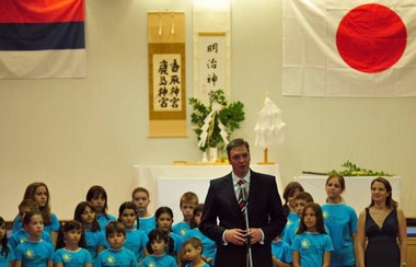 Обележавање годишњице дипломатских односа Србије и Јапана започело је интонирањем химни двеју земаља које је извео хор Дечијег културног центра из Београда.