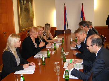 Београд, 3. октобар 2012. године – Министар регионалног развоја и локалне самоуправе у Влади Републике Србије Верица Калановић разговарала је данас са државним секретаром за европске и међународне послове Аустрије Реинхолдом Лопатком о искуствима двеју земаља на плану територијалног уређења и функционисања власти на регионалном и локалном нивоу.