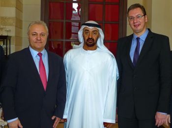 Београд/Абу Даби, 18. октобар 2012. године – Делегација Владе Републике Србије, коју предводе први потпредседник Владе и министар одбране Александар Вучић и министар финансија и привреде Млађан Динкић, састала се данас у Абу Дабију са председником Уједињених Арапских Емирата (УАЕ) шеиком Мухамедом бин Заједом ал Нахјаном.