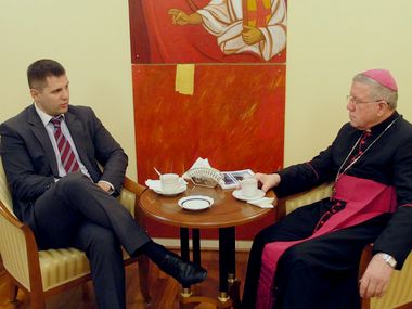 Београд, 18. децембар 2012. године – Државни секретар за омладину Министарства омладине и спорта Владе Републике Србије Ненад Боровчанин разговарао је данас са београдским надбискупом Станиславом Хочеваром у седишту Београдске надбискупије Римокатоличке цркве.
