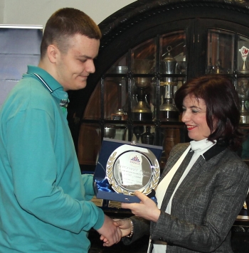 | Алиса Марић уручује признање Александру Инђићу |