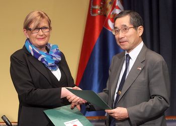 Он је указао на то да је Влада Јапана помогла 146 пројеката за основне потребе становништва, при чему је, у области образовања, помоћ вртићу “Невен” из Мионице 61. донаторски пројекат.