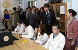 Београд, 14. јануар 2005. године - Министар просвете и спорта у Влади Републике Србије Слободан Вуксановић и шеф Европске агенције за реконструкцију (ЕАР) Адријано Мартинс посетили су данас Средњу медицинску школу на Звездари којој је ова агенција доделила 35 рачунара са опремом.