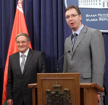 Београд, 16. мај 2013. године – Први потпредседник Владе Републике Србије и министар одбране Александар Вучић и потпредседник Владе Републике Белорусије Пјотр Прокопович разговарали су данас о унапређењу економске и трговинске сарадње и међусобним улагањима у циљу већег запошљавања и решавања горућих економских проблема у Србији.