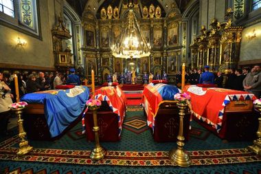 Посмртне остатке Петра ИИ Карађорђевића у Саборну цркву унели су припадници Гарде Војске Србије, а припадници Удружења "Краљевина Србија", који су били обучени у српске народне ношње, унели су ковчеге краљица Марије и Александре и краљевића Андреја.