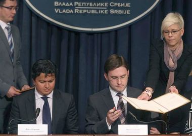 Београд, 10. јун 2013. године – Министар правде и државне управе у Влади Републике Србије Никола Селаковић и генерални директор француске Фондације за континентално право Патрик Папазиан потписали су данас у Влади Србије Споразум о унапређењу сарадње Србије и Француске у области правосуђа.