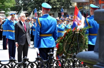 Крушевац, 28. јун 2013. године – Председник Републике Србије Томислав Николић предводио је данас комеморативну церемонију полагања венаца и одавања државних и војних почасти поводом обележавања 624-годишњице боја на Косову код Споменика косовским јунацима у Крушевцу.