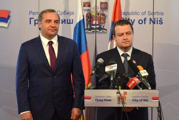 Ниш, 24. септембар 2013. године – Председник Владе Републике Србије и министар унутрашњих послова Ивица Дачић и министар за ванредне ситуације Руске Федерације Владимир Пучков разговарали су данас у Нишу о завршним активностима на правном регулисању српско-руског хуманитарног центра, његовом опремању и локацији у том граду.